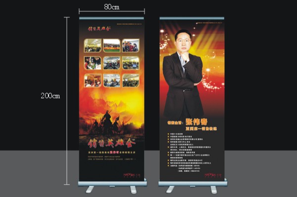 内客户需求的易拉宝常用标准尺寸是80cm*200cm,画面般是78cm*200cm;